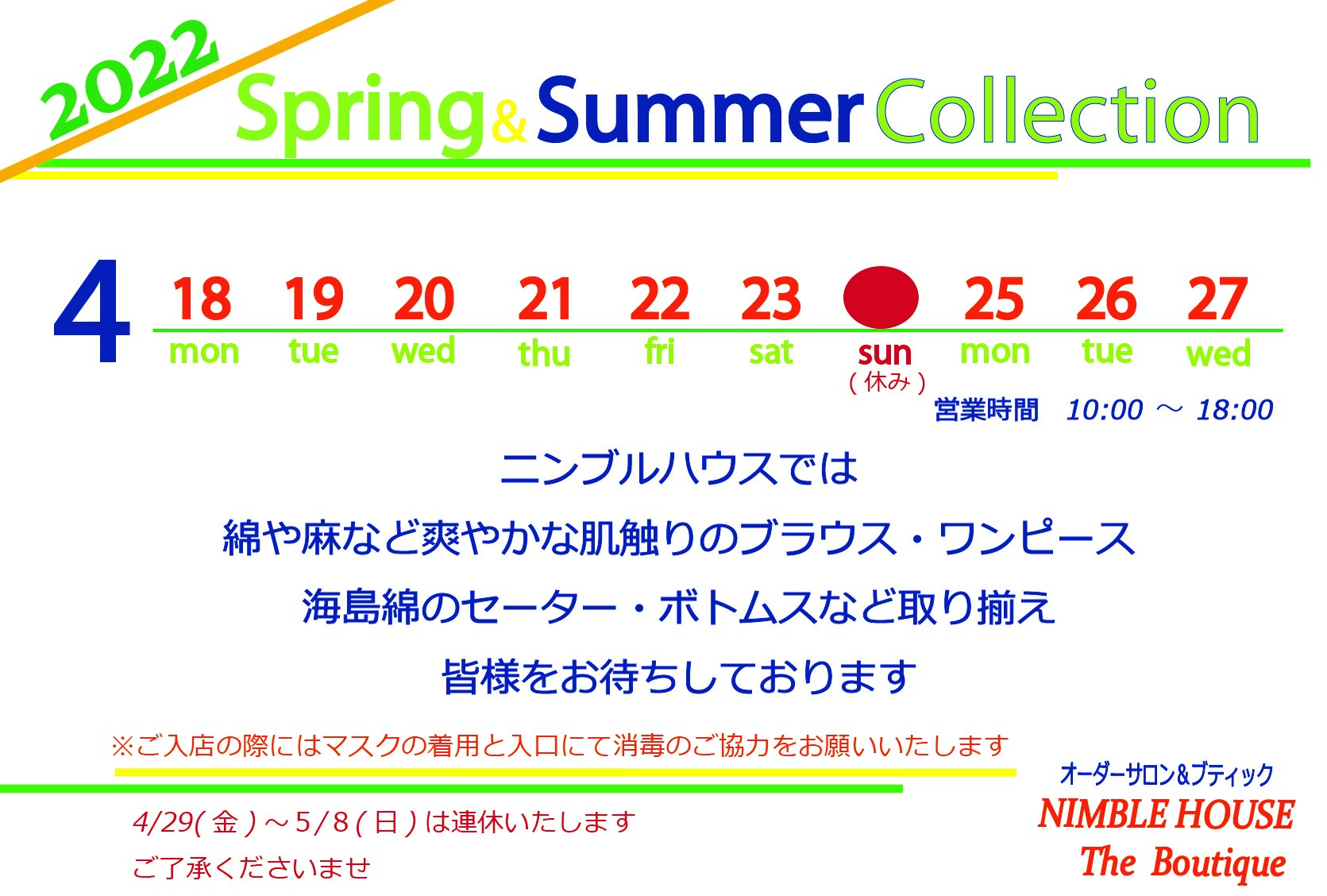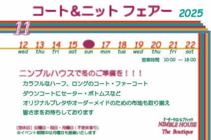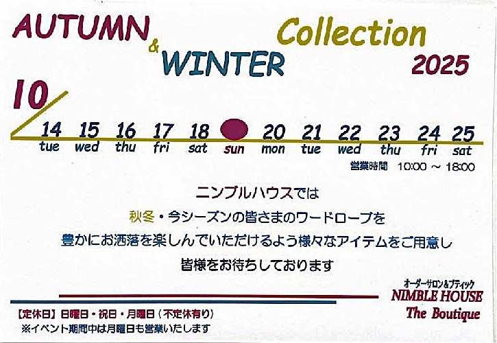 ニンブルハウスは創業以来のコンセプトを生かし、お客様の知性、美しさなどの個性をより引き出すということをモットーに服作りをしております。